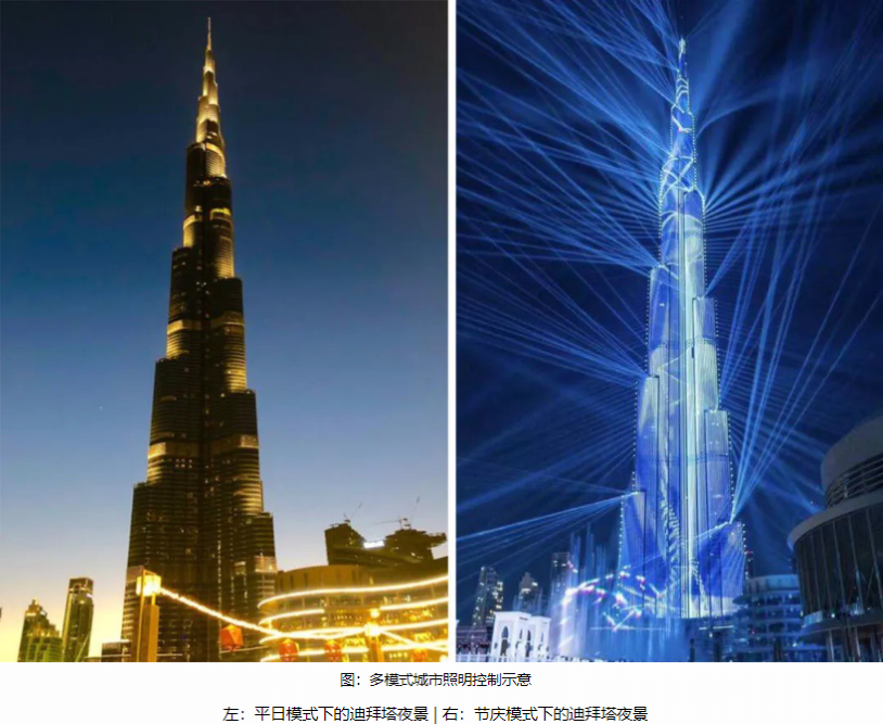 不同城市空間、(同一城市空間)不同時段存在差異化的夜間活動需求,單一模式的城市照明狀態(tài),一方面不利于分時段差異化的夜景氛圍營造,另一方面不利于城市照明的節(jié)能控制。近年來,照明及相關(guān)控制技術(shù)的迅猛發(fā)展,讓分時分級的精細化城市照明管控成為可能。通過分時分級的多模式城市照明控制,可更好的滿足不同城市空間、不同時段差異化照明需求,并有效控制城市能耗,將綠色照明的建設(shè)理念落到實處。