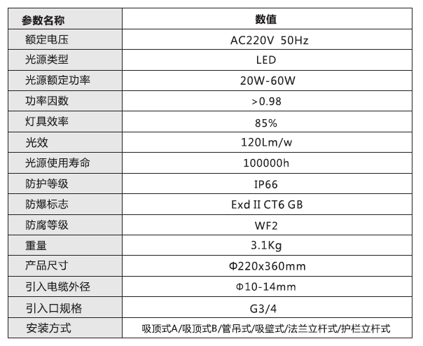 適用于防爆區域的礦山副巷道、電纜隧道、設備維護隧道、小型人形通道、廊道等,以及大型設備倉庫、設備工作臺等局部補光照明。